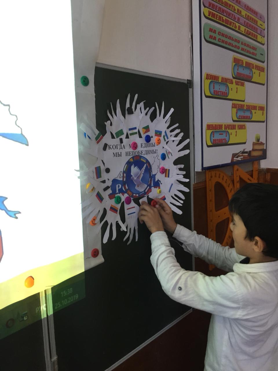 Учителя знакомили учащихся с основным содержанием праздника. Изготавливали открытки, агит – листовки «Пока мы едины, мы непобедимы!». Показаны презентации и видеофильмы.