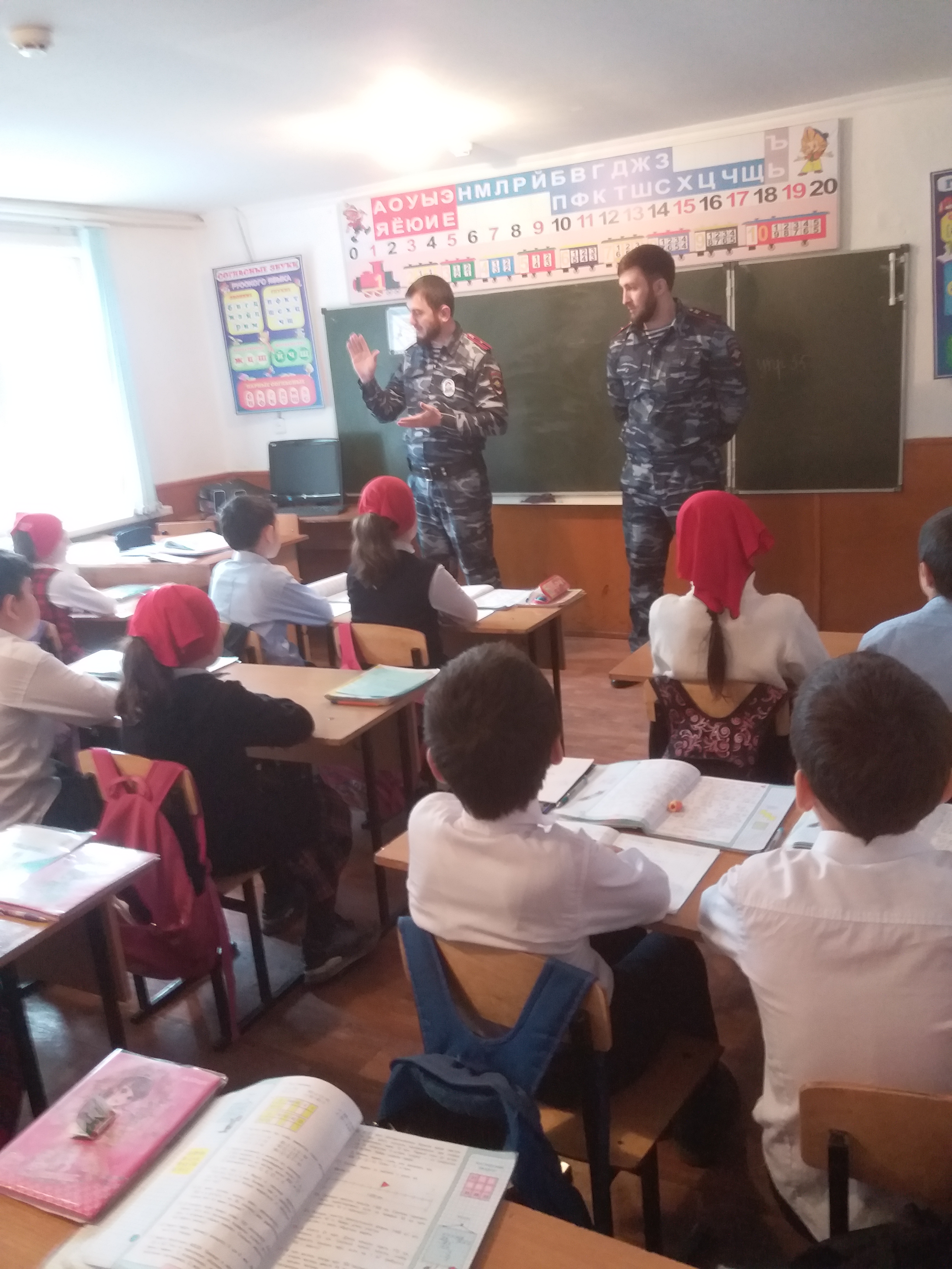 06.03.2020Проведена встреча с учащимися школы по вопросам направленных на противодействие терроризму по следующим направлениям: антитеррористическая защищенность, действия в чрезвычайных ситуациях. Целью проведенного мероприятия является формирование и развитие надлежащих морально-психологических качеств, сознательного и ответственного отношения к вопросам личной безопасности.На мероприятии приняли участие: инспектор ПДН капитан полиции Эжаев Умар Висаевич, инспектор ПДН мл. лейтенант Хазбулатов Магарби Жамалаевич
