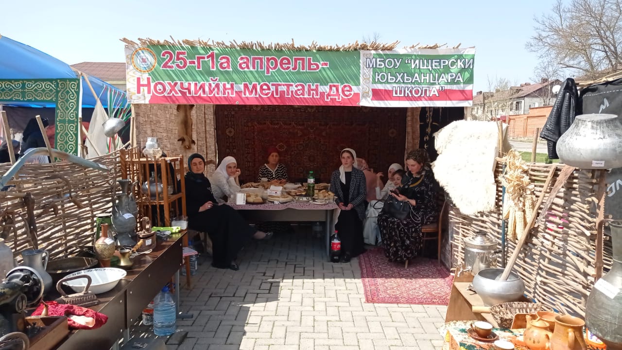 8 апреля наша школа приняла участие в районном праздничном мероприятии ко Дню чеченского языка. На обозрение гостей была представлена выставка старинной утвари, а также блюда национальной кухни