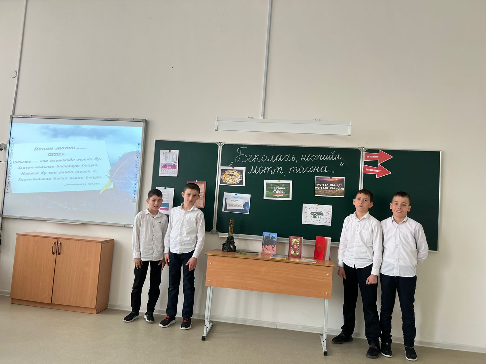 02.03.2023Хууш ма-хиллара, 2023 шо вайн Мехкан куьйгалхочо, Россин Пачхьалкхан Турпалхочо Кадыров Ахьмад-Хьаьжин Рамзана шен Указца «Нохчийн меттан шо» аьлла дIакхайкхийна ду.Цунна лерина, Ищерски йуккъерчу 2 йолчу ишколехь бекарг беттан 2-чу дийнахь нохчийн меттан а,литературин а хьехархочо Агаева Хажарс дIабахьира 4 классашна йуккъехь къовсам «Суна хаьа нохчийн мотт».Коьрта 1алашо йара нохчийн меттан хазалла гайтар,шен матте а,махке а,шен халкъе а болу безам к1аргбар