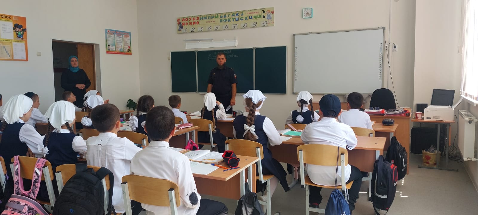 06.09.2023С учащимися МБОУ "Ищерская СОШN2 "инспектор по пропаганде БДД ОГИБДД ОМВД России по Наурскому району ЧР, старший лейтенант полиции БетербековХ.И. провел беседу"Безопасный путь от дома до школы"Цель:закрепить правила поведения на улице,правила для пешеходов и пассажиров.В ходе беседы дети охотно отвечали на вопросы инспектора, повторили и закрепили знание правил дорожного движения.