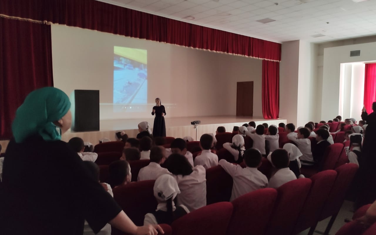 03.10.202303.10.23г. В МБОУ "Ищерская СОШ №2"прошло профилактическое общешкольное мероприятие с участием инспектора ПДН. Инспектор ознакомил школьников со статистикой ДТП с участием детей на территории Наурского района и обозначил основные причины дорожно-транспортных происшествий. В ходе встречи инспектор рассказала учащимся о том, как правильно вести себя на дорогах, пешеходных переходах.Цель: профилактика детского дорожно-транспортного травматизма.