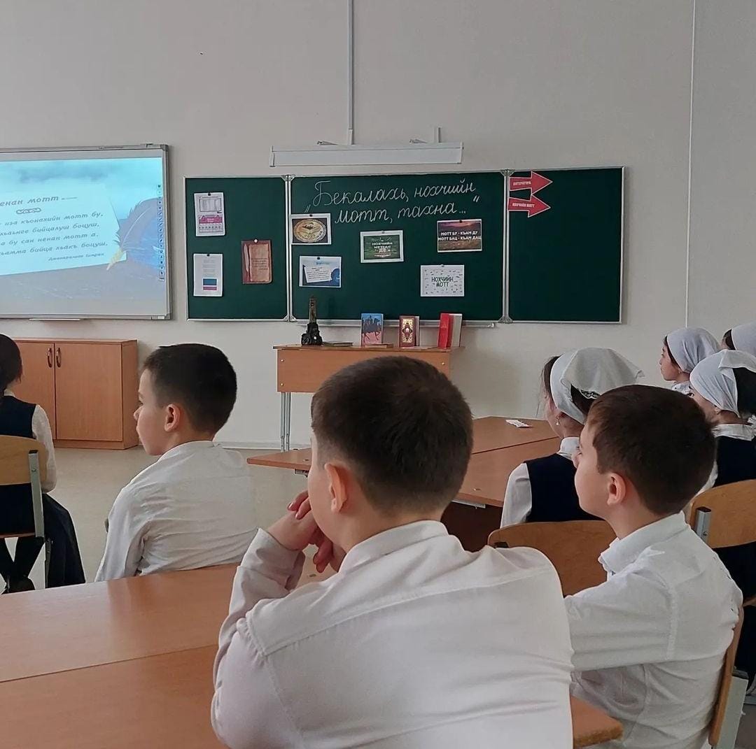 Цунна лерина,Ищерски йуккъерчу 2 йолчу ишколехь бекарг беттан 2-чу дийнахь нохчийн меттан ,литературин хьехархочо Агаева Хажарс д1абаьхьира 4 классашна йукъахь къовсам «Суна хаьа нохчийн мотт». Коьрта 1алашо йара нохчийн меттан хазалла гайтар,шен матте а ,махке а ,шен халкъе а болу безам гайтар.