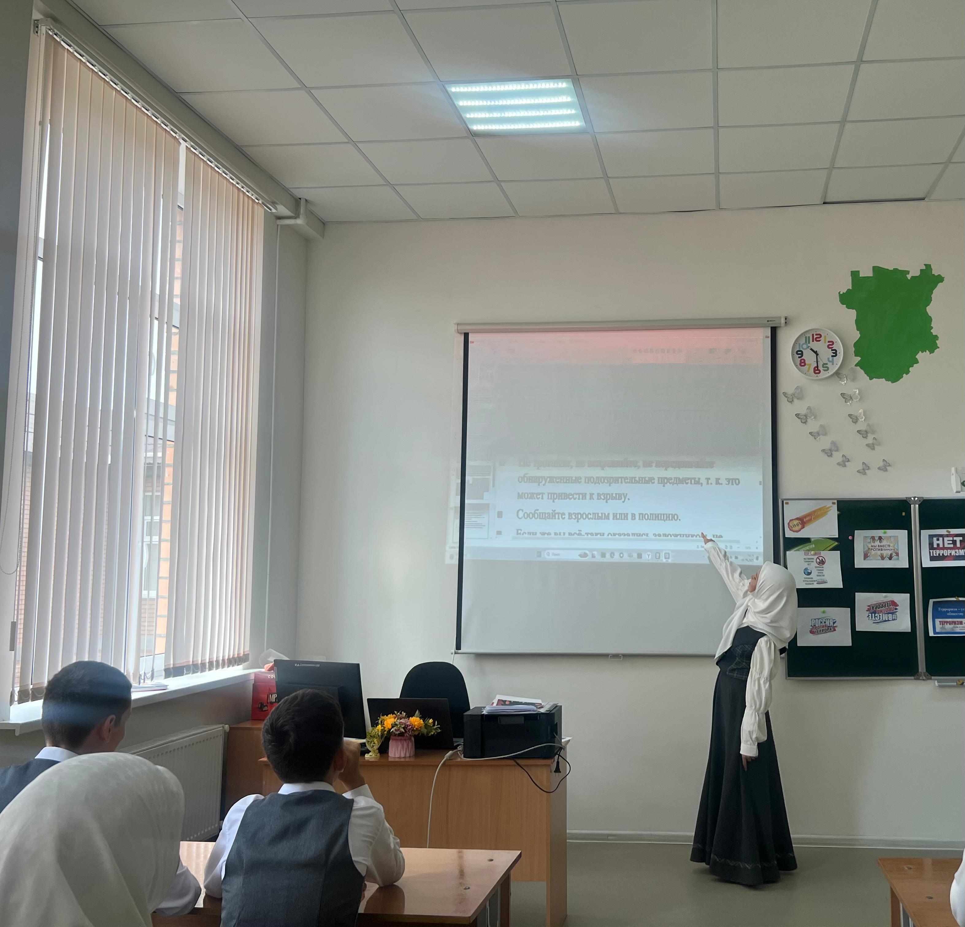 В ходе мероприятия ученики получили исчерпывающую и важную информацию о сущности терроризма, его целях и последствиях для общества. Ребята узнали, что терроризм — это тяжкое преступление, совершаемое организованными группами с целью достижения своих целей через насилие. Были также раскрыты основные типы террористических актов и роль террористов, которые захватывают заложников, устраивают взрывы и применяют оружие, часто нанося ущерб невинным людям, в том числе детям.Особое внимание было уделено обсуждению правил поведения и мер безопасности при угрозе террористических действий. Ученики рассмотрели, как важно сохранять спокойствие и действовать рационально в экстремальных ситуациях, чтобы защитить себя и окружающих.