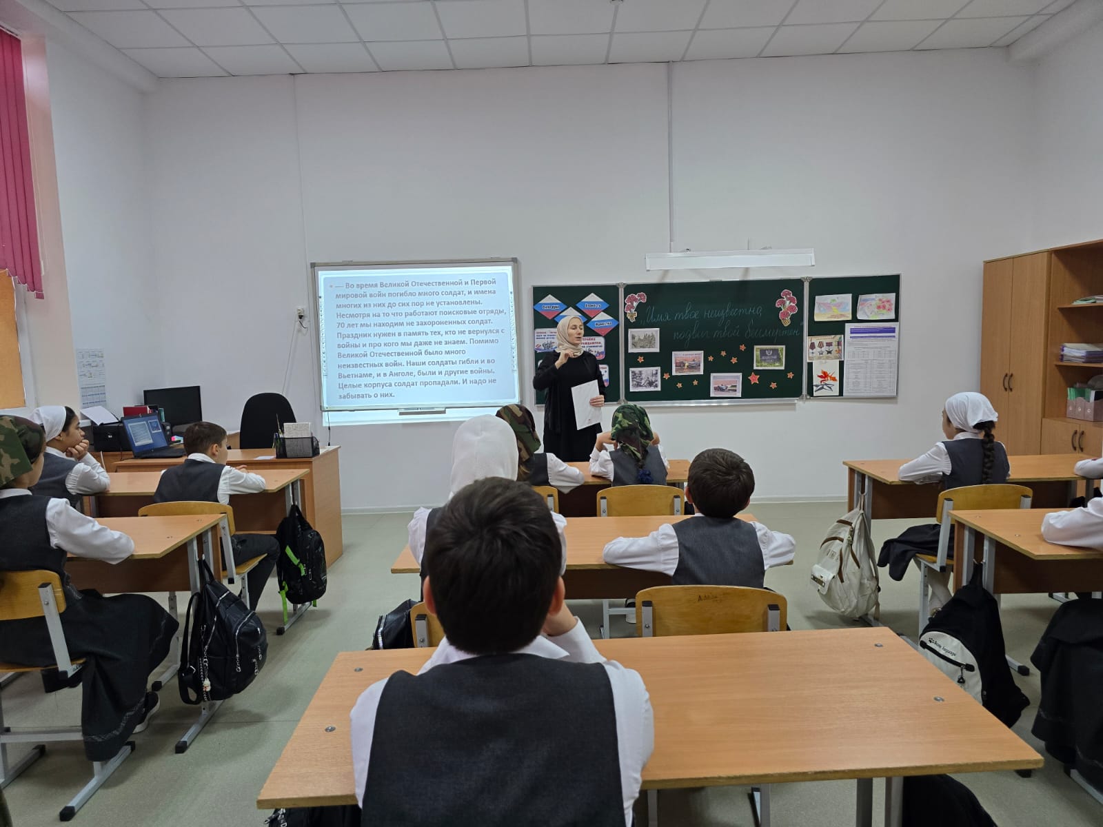 03.12.2025Классный час на тему "Имя твое незабыто , подвиг твой бессмертен" проведён 3 декабря в 5 "А" классе с целью формирования у учащихся патриотических чувств и глубокого уважения к героям Великой Отечественной войны, подчёркивая бессмертие их подвига через личные истории и имена. Учащиеся познакомились с биографиями чеченских и российских героев, обсудили значение памяти о войне для современности.