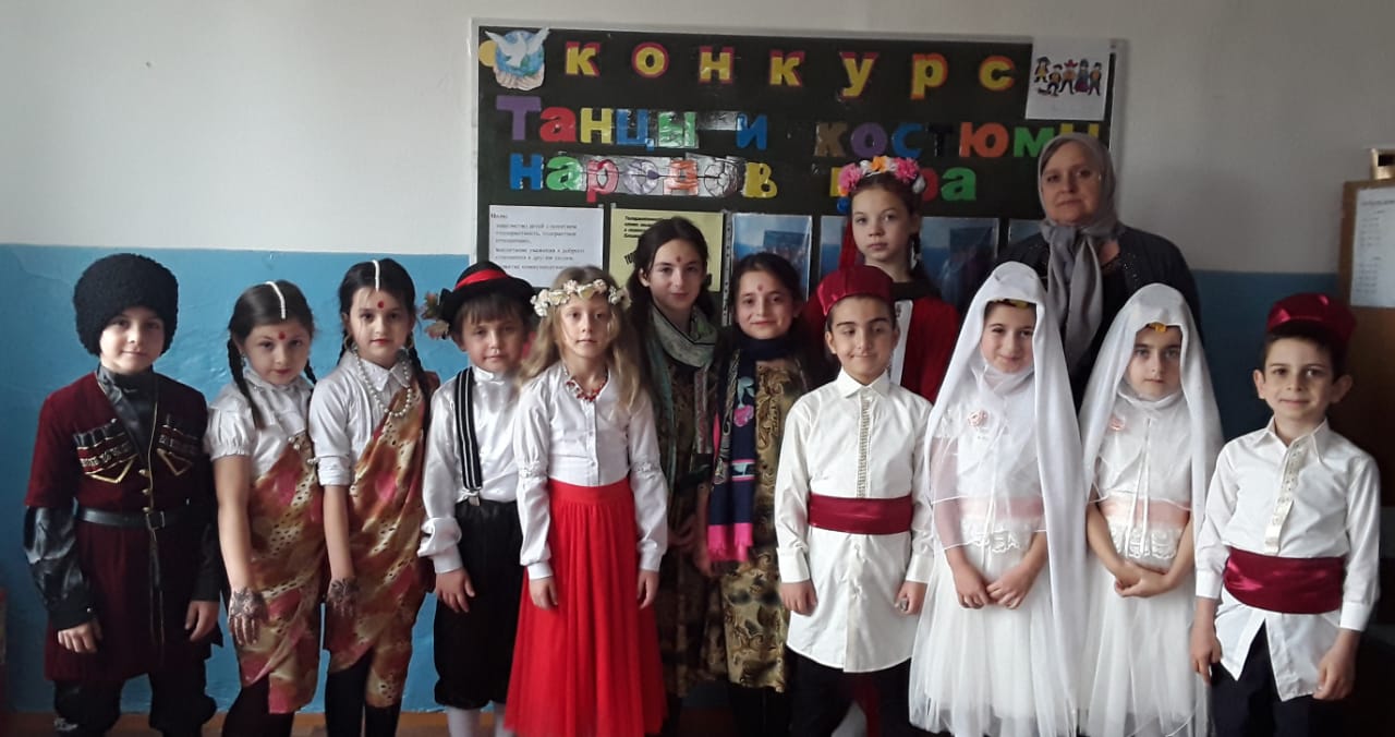 16.11.2018В школе 16 ноября 2018года прошел конкурс «Танцы народов мира», приуроченный Неделе толерантности. В этом конкурсе приняли участия учащиеся 1- 4 классов. Они представили национальные костюмы и народные танцы. Путем творческого диалога, дружеского общения детей, людей разных национальностей и вероисповедания происходит обмен культур народов мира, что учит жить без насилия и в атмосфере взаимопонимания на нашей планете. Учащиеся ответственно подошли к подготовке номеров: придумывали образы, движения танцев, сами создавали реквизиты к танцам. В результате получился неожиданно яркий, весёлый праздник, который прошел на высоком уровне. Присутствующие получили огромное удовольствие от увиденного!